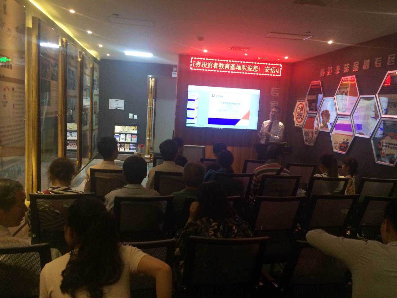 2017年5月9日,安信证券广西分公司的夏少烽老师来到了投资者教育基地,为大家带来二季度策略分享。2017即将进入二季度,全球经济回暖,需求持续增加,国内将持续加强金融监管,防范系统性金融风险发生,加强供给侧改革。金融板块在第二季度将会是一个投资的热点。夏老师的观点犀利,独到,得而了到场听众的一致好评。